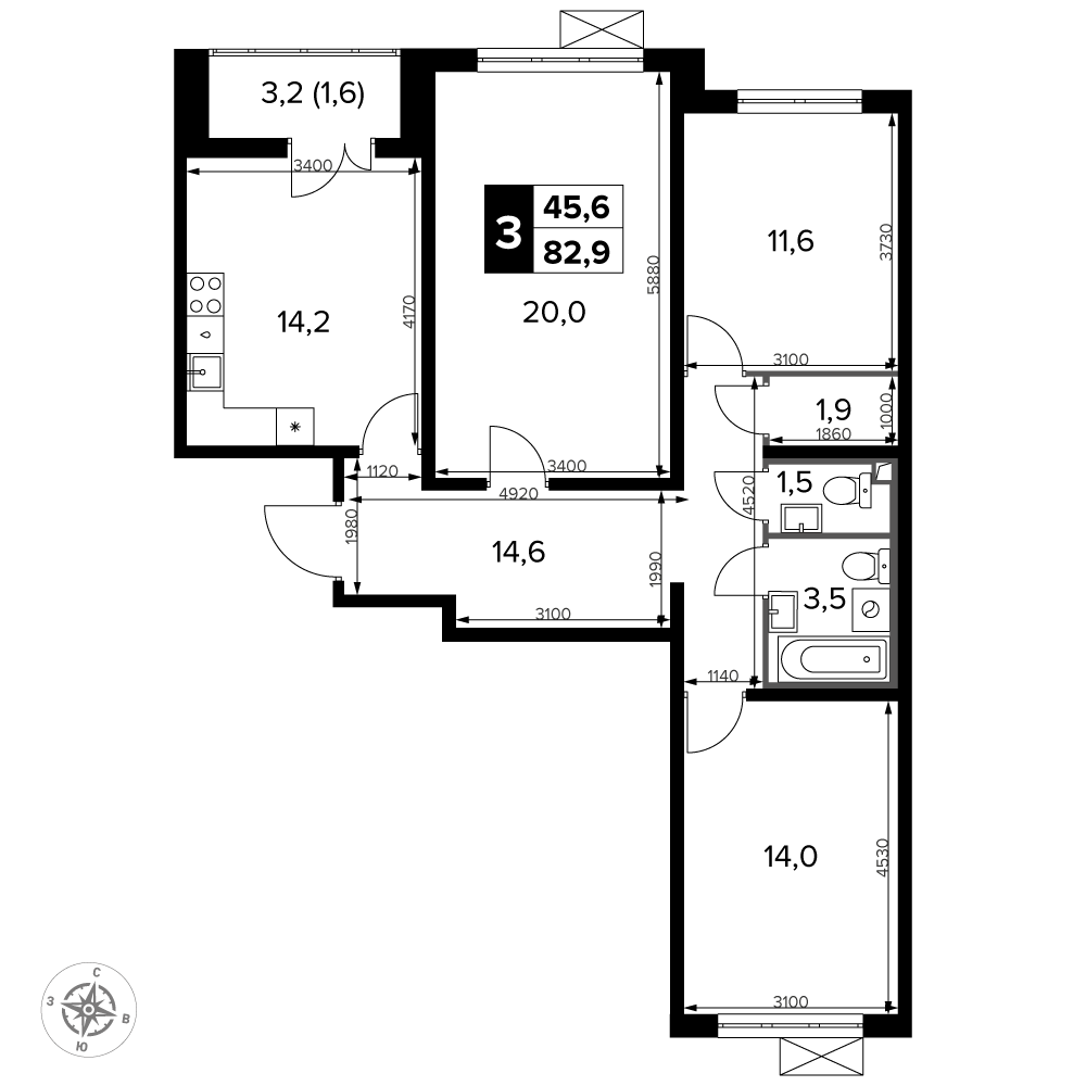 | 10 | Ноябрь 2025 | 3 | 14 | 1 | 1 | 3 | 83.8 | 18 989 080 | с отделкой | ![]() | 1 | ||