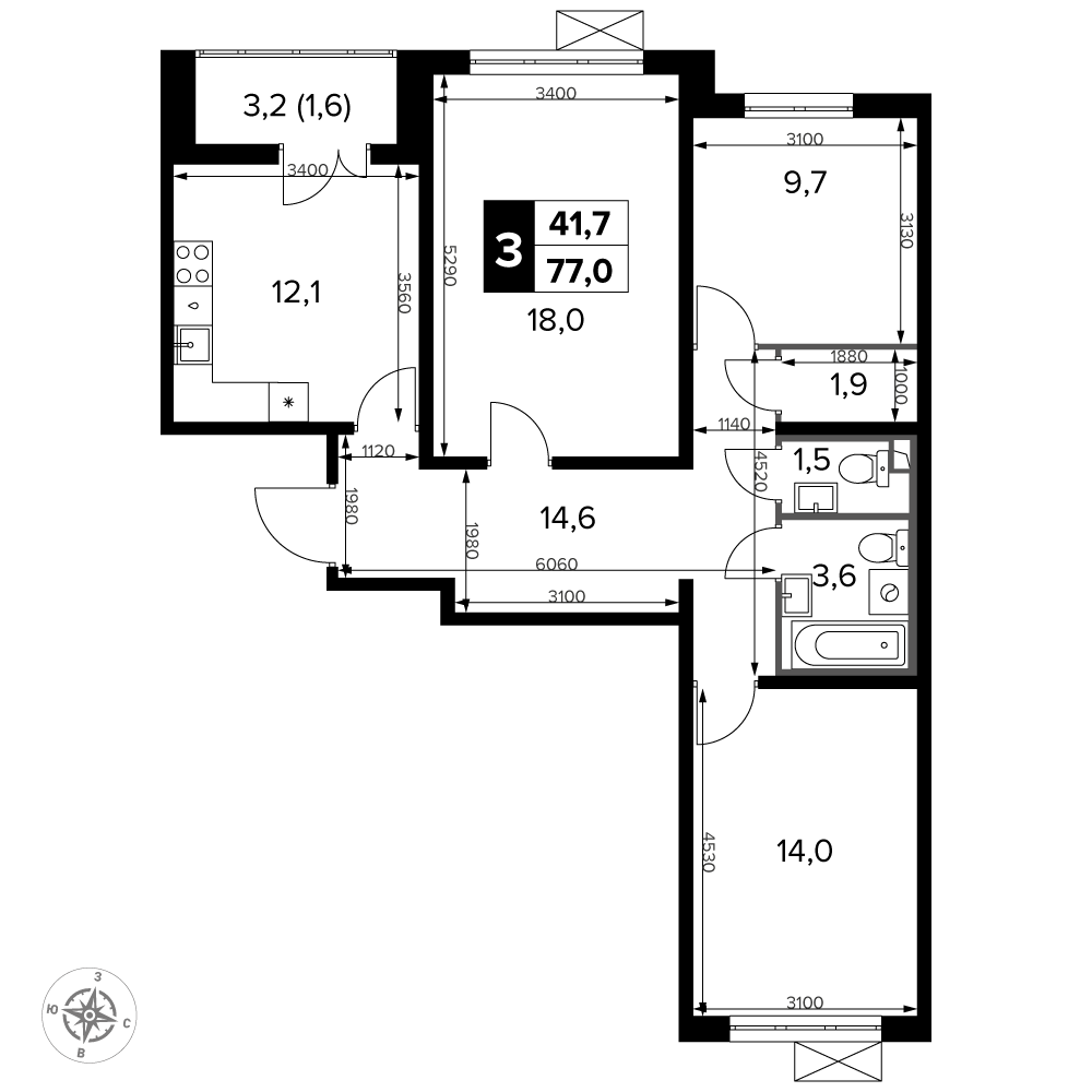 | 5 | Декабрь 2021 | 3 | 18 | 6 | 6 | 3 | 79.8 | 20 133 540 | без отделки | ![]() | 6 | ||