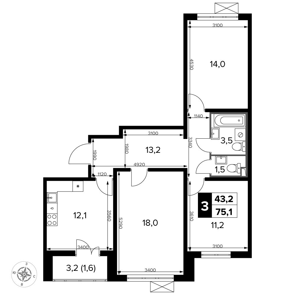 | 10 | Ноябрь 2025 | 3 | 18 | 1 | 1 | 3 | 83.8 | 18 989 080 | с отделкой | ![]() | 1 | ||