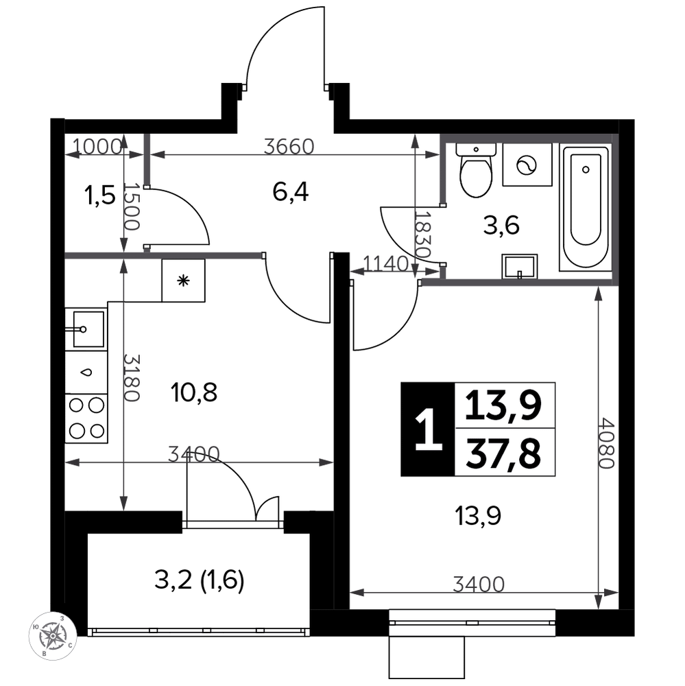 ГлавнаяЖилая недвижимостьЖК «Южная Битца»1-комнатная квартира № 5