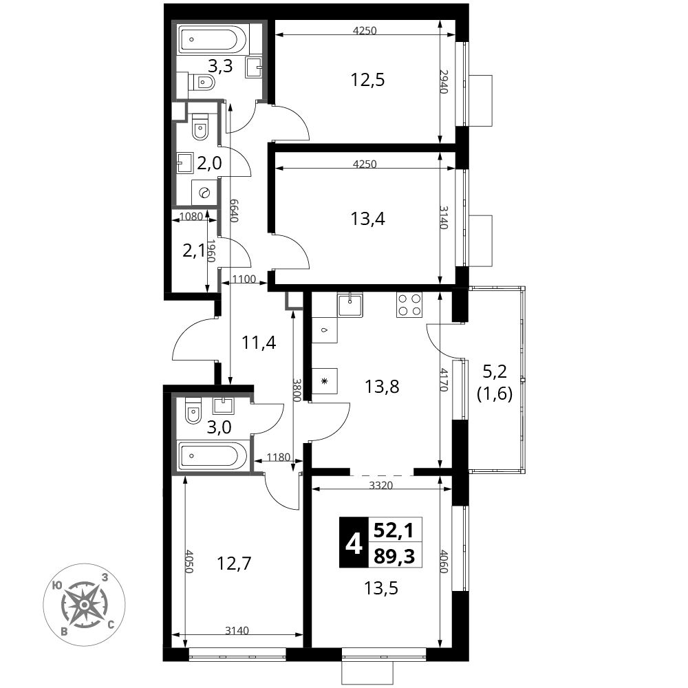 ГлавнаяЖилая недвижимостьЖК «Южная Битца»4-комнатная квартира № 1