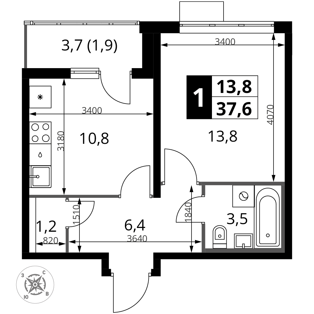 ГлавнаяЖилая недвижимостьЖК «Южная Битца»1-комнатная квартира № 3