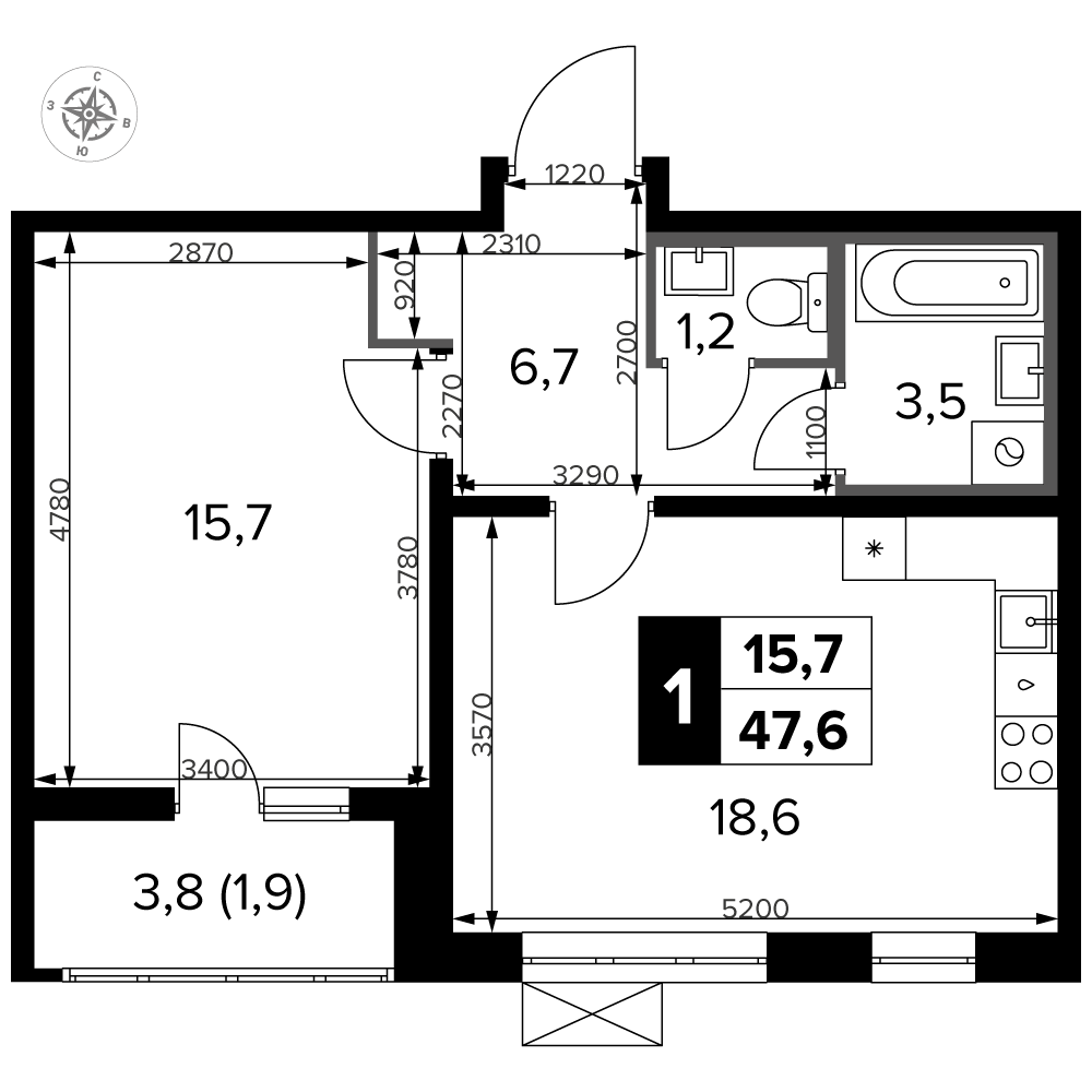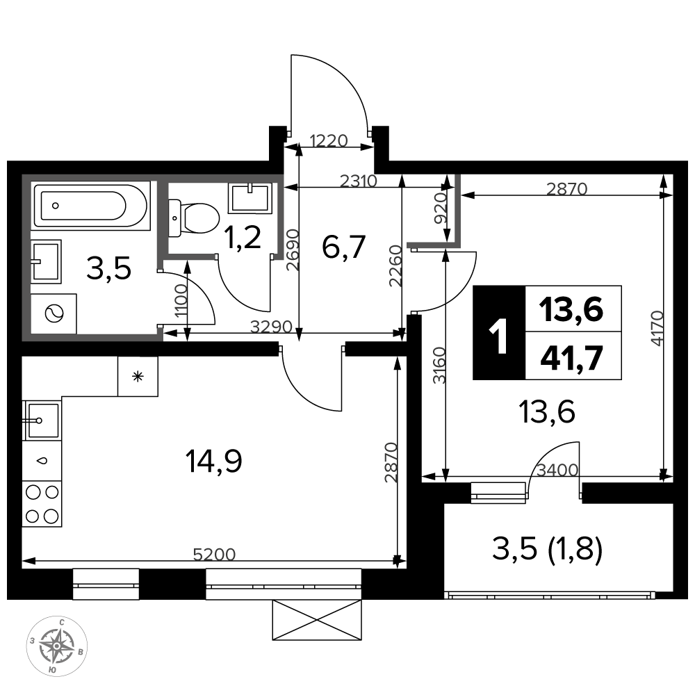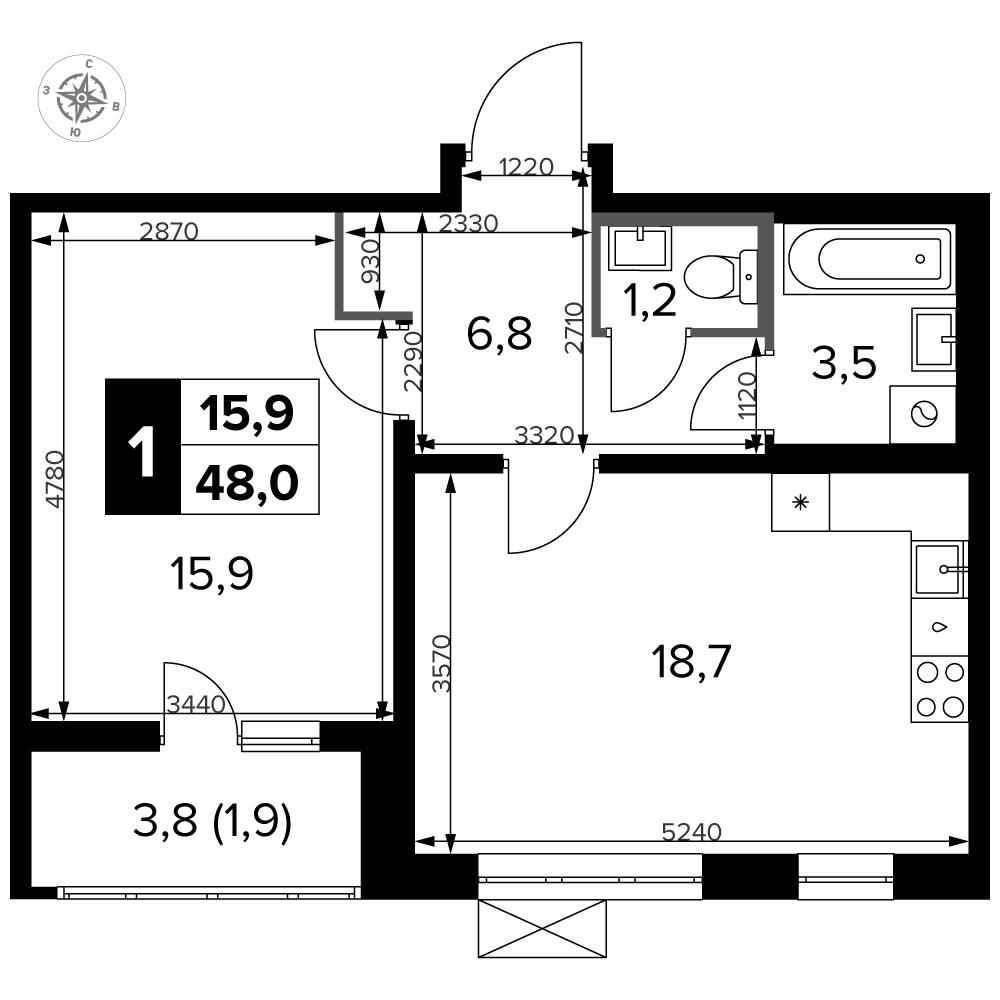 ГлавнаяЖилая недвижимостьЖК «Южная Битца»1-комнатная квартира № 2