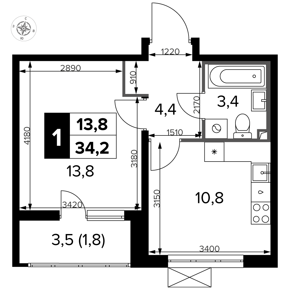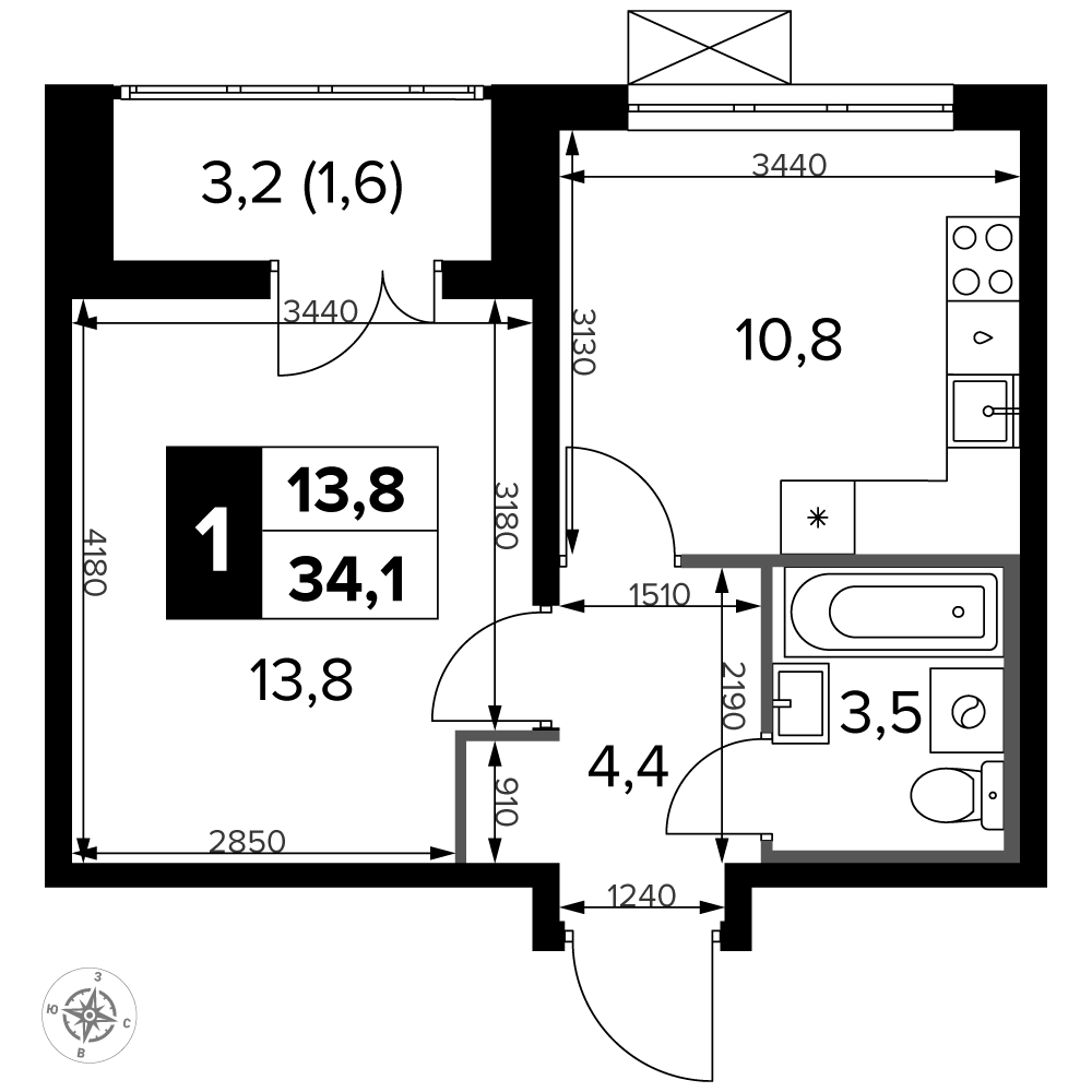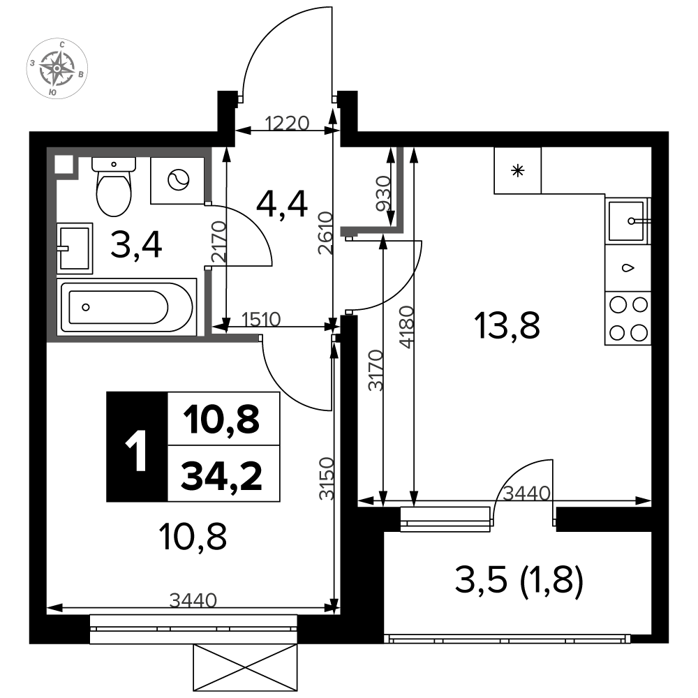 ГлавнаяЖилая недвижимостьЖК «Южная Битца»1-комнатная квартира № 3