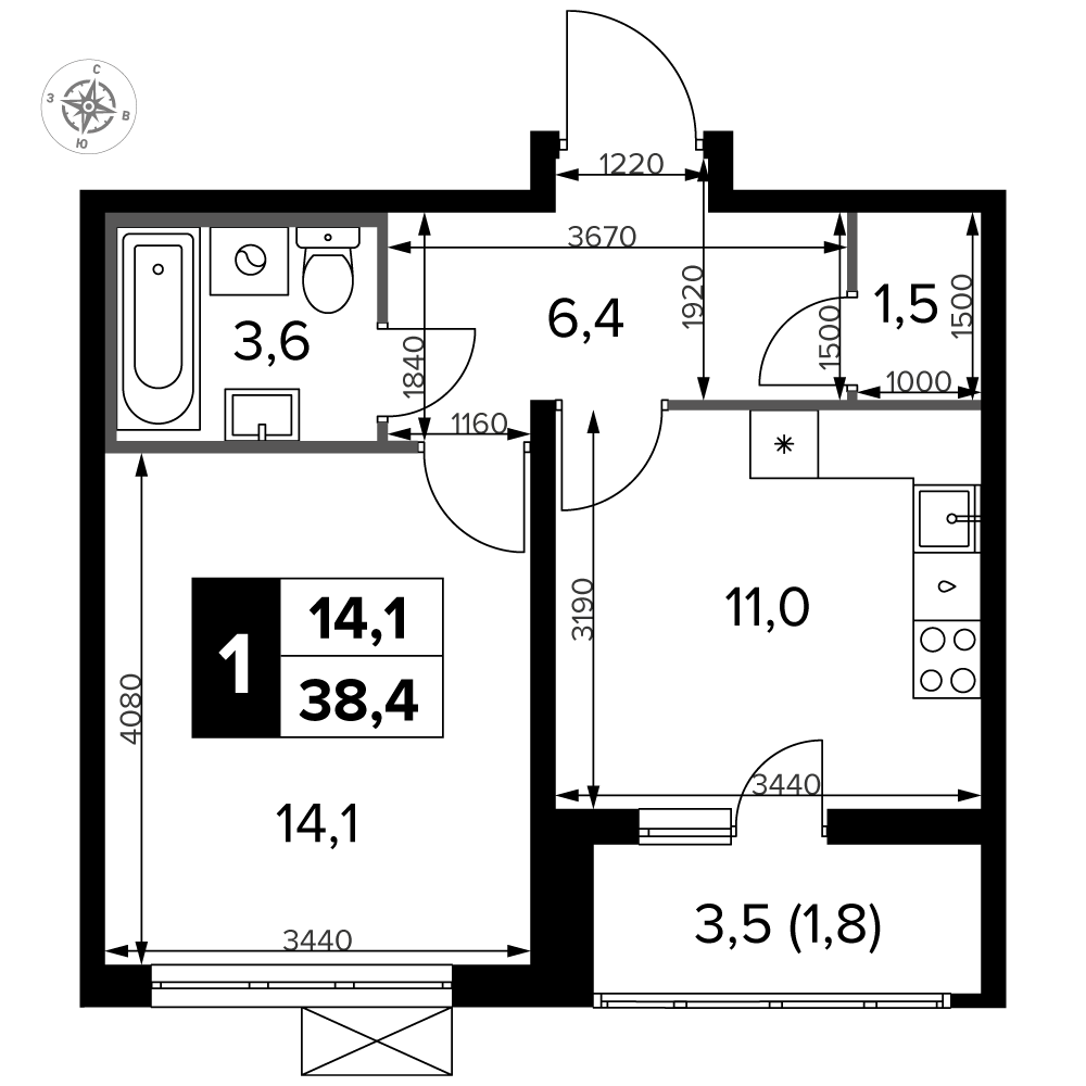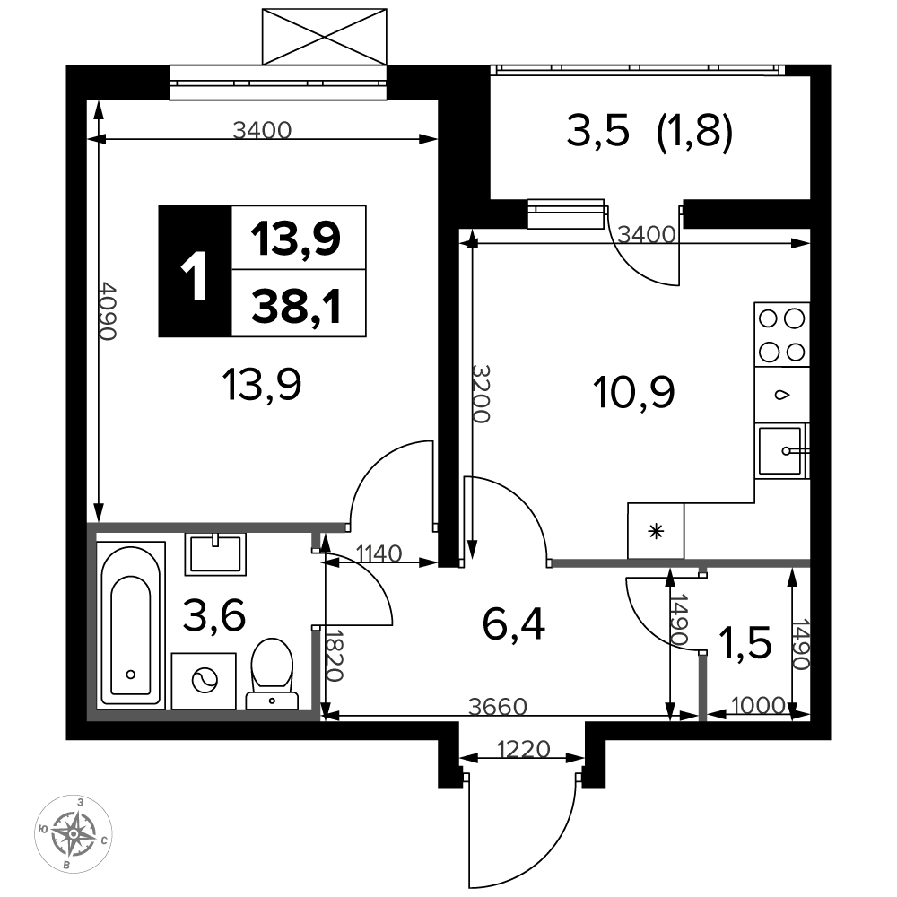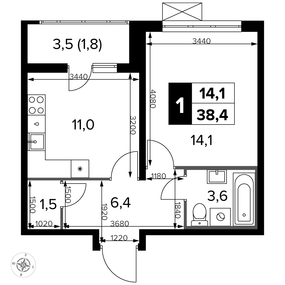 ГлавнаяЖилая недвижимостьЖК «Южная Битца»1-комнатная квартира № 2