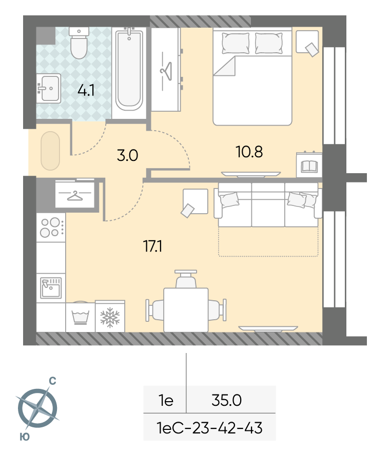 35.1 м² · 1 комната · 43/43 этаж · Декабрь 2027