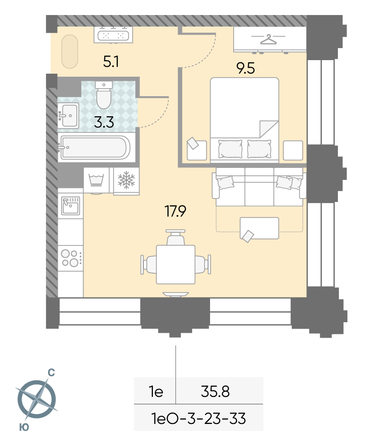 Продажа 1-комнатной квартиры № 6, 35.8 кв.м, этаж 23/43 в ЖК «ЗИЛАРТ»