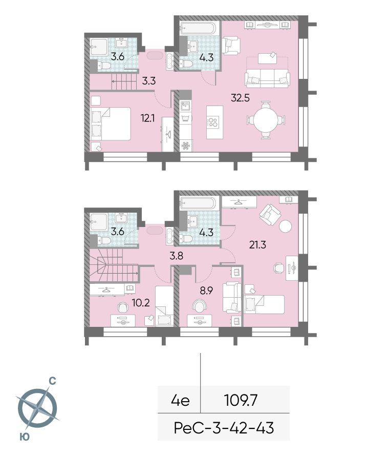 109.7 м² · 4 комнаты · 42/43 этаж · Декабрь 2027