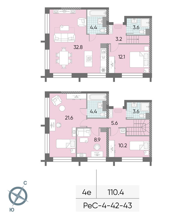 110.4 м² · 4 комнаты · 42/43 этаж · Декабрь 2027