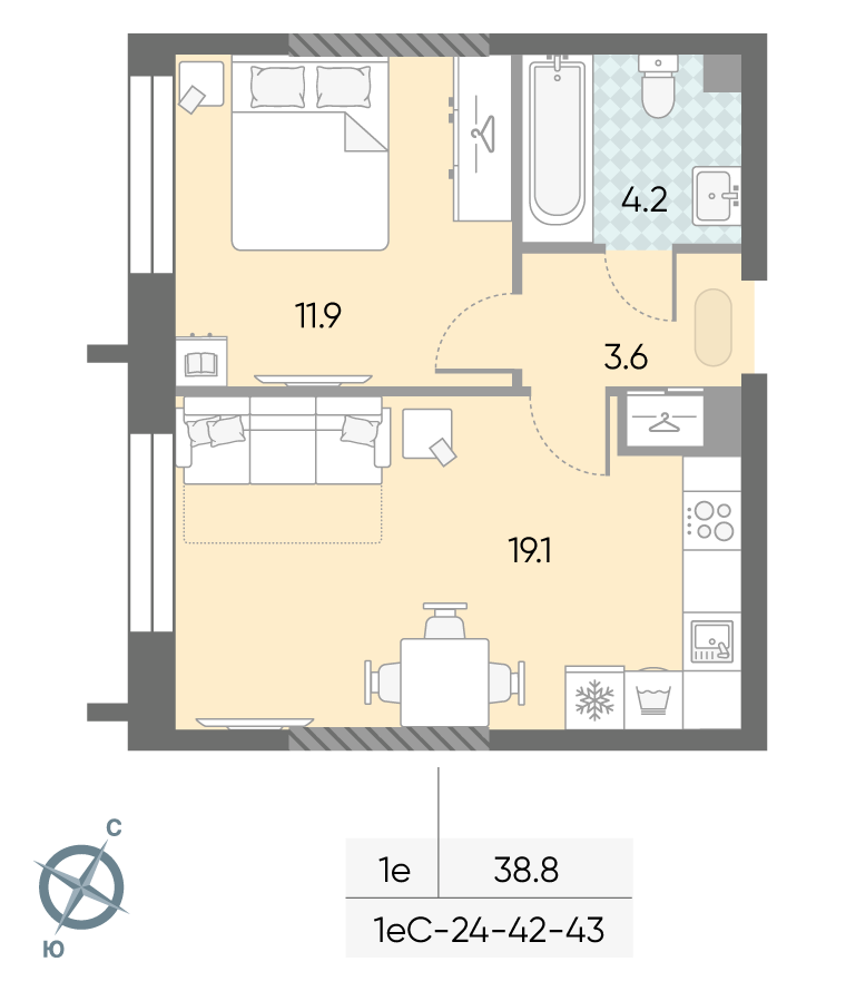 35.8 м² · 1 комната · 26/43 этаж · Декабрь 2027