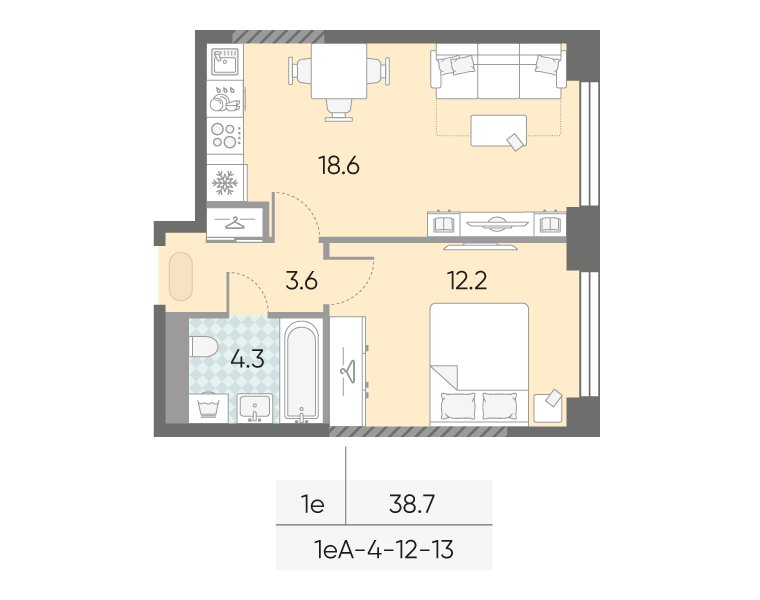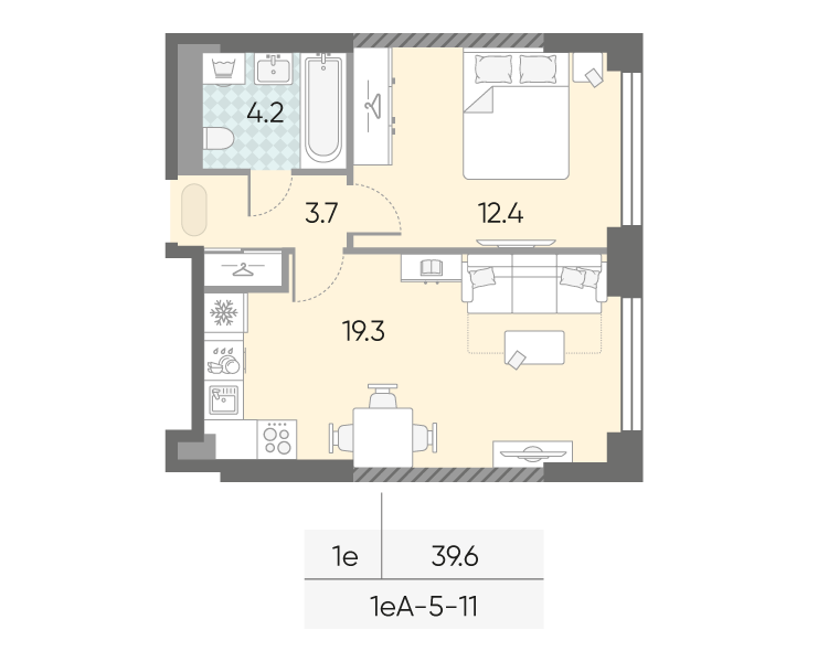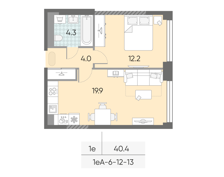 39.6 м² · 1 комната · 8/43 этаж · Декабрь 2027