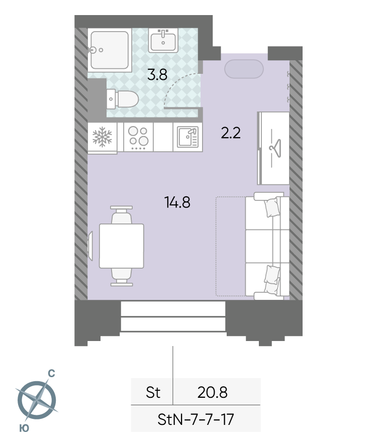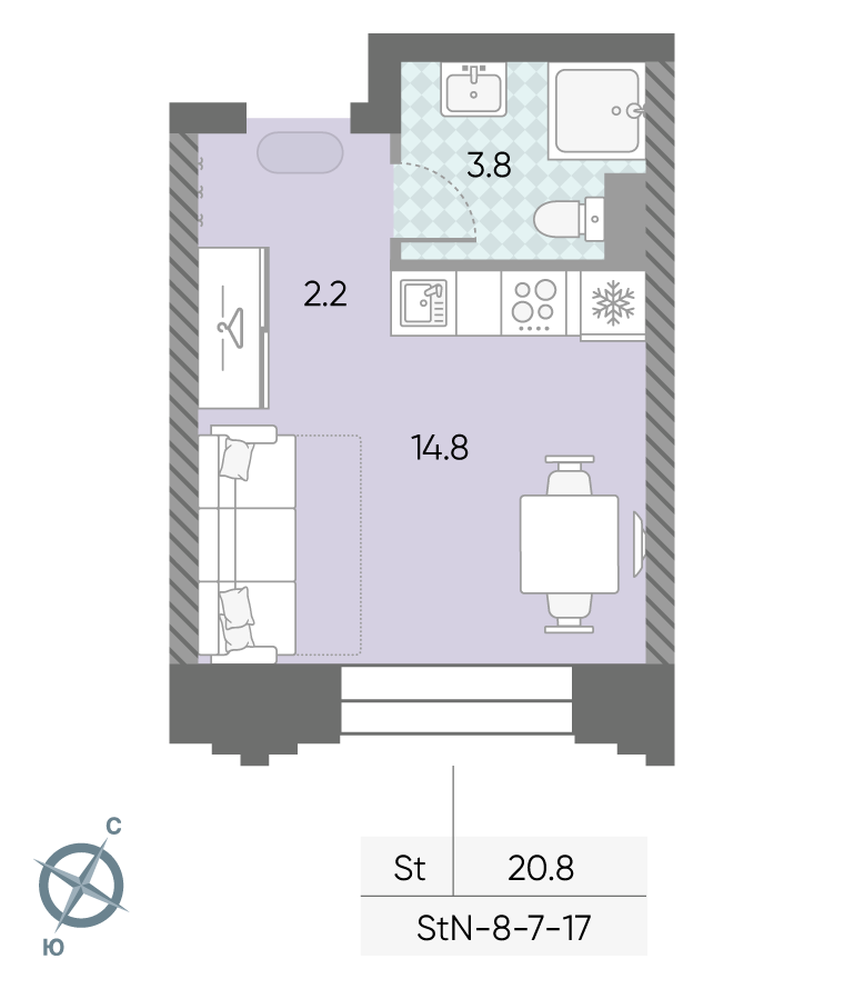 Продажа 1-комнатной квартиры № 12, 19.8 кв.м, этаж 8/43 в ЖК «ЗИЛАРТ»