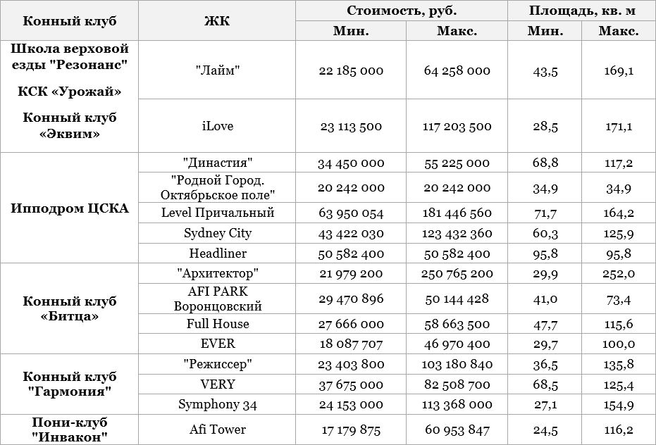 По оценкам экспертов, в Москве сегодня действует более 50 конных клубов разного формата — от закрытых элитных до семейных и детских. Специалисты отдела проектного консалтинга компании Est-a-Tet провели анализ конно-спортивной инфраструктуры столицы и составили подборку жилых комплексов бизнес-класса, расположенных в непосредственной близости от наиболее популярных клубов.